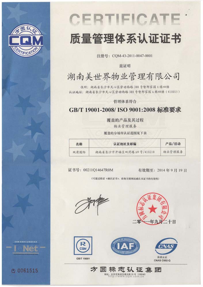 2011年公司被评为湖南省物业管理行业综合实力40强企业