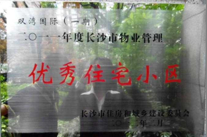 2011年双湾国际被评为年度长沙市物业管理优秀住宅小区